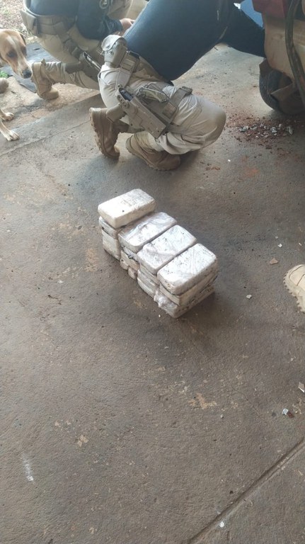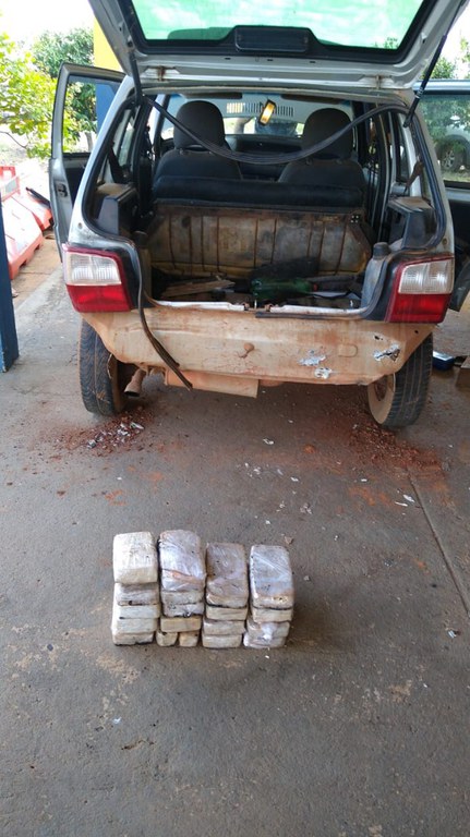 No local preparado, assoalho do porta-malas, foram localizados 19 tabletes de pasta base de cocaína (18.7 Kg).